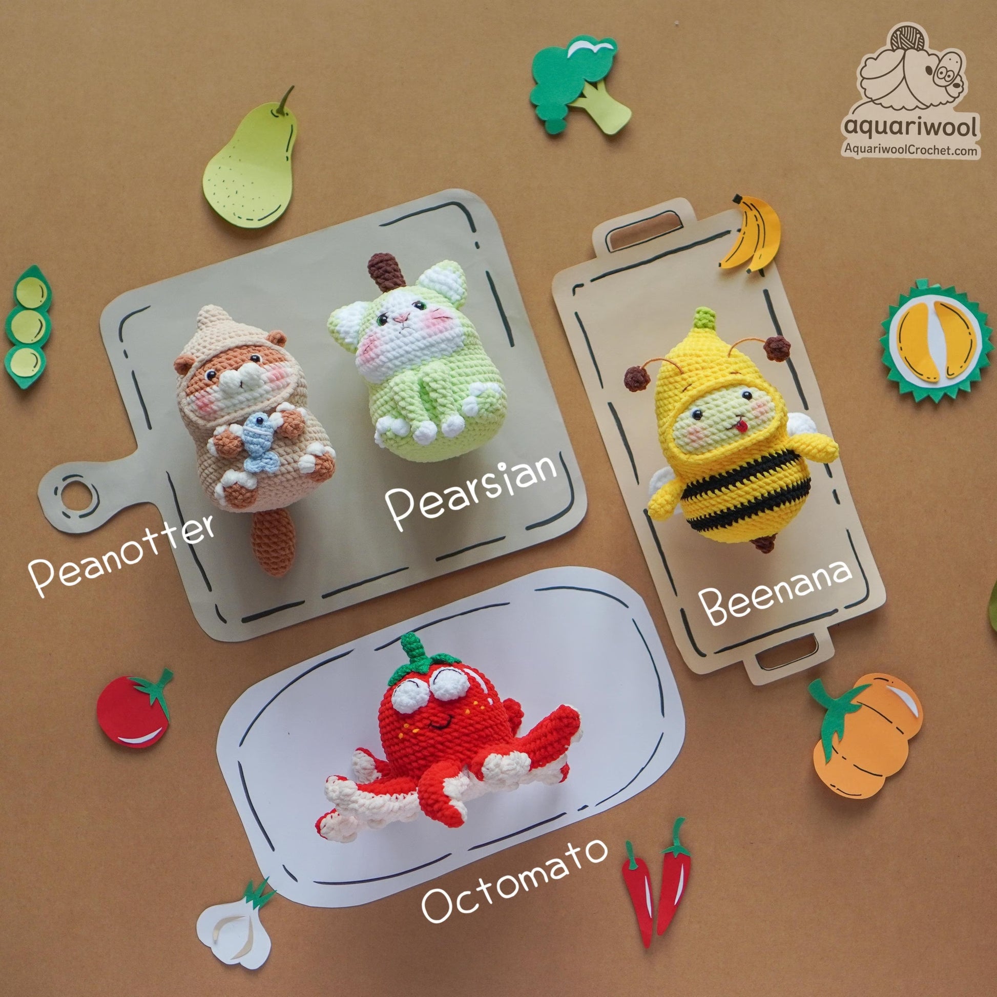Amigurumi Pattern Bundle PDF – 4 Botanimals Crochet Patterns | Cute Kawaii Animal & Fruit Amigurumi Plush Toy Crochet by Aquariwool